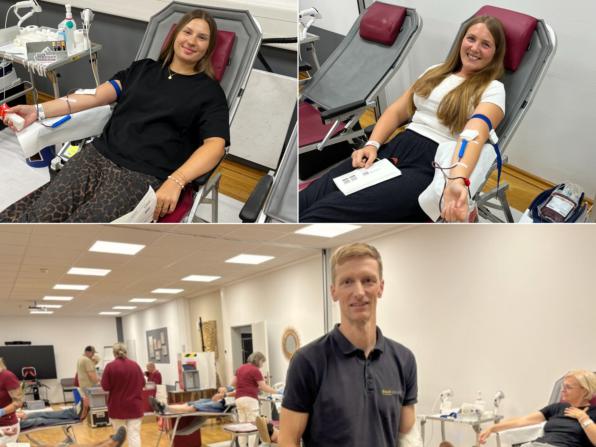 Die diesjährige Blutspendenaktion war erneut ein großer Erfolg. 168 Spendenwillige folgten dem Aufruf, darunter 11 Erstspendende, was besonders erfreulich ist. Im Vergleich zum Vorjahr, in dem 140 Spendenwillige und 8 Erstspender*innen registriert wurden, zeigt sich das wachsende Engagement unter den Mitarbeitenden und der Bevölkerung. Mehr als 80 Liter Blut genrierte der Aktionstag der BAUR-Gruppe Als besonderes Dankeschön für ihr Engagement erhielten alle Spendenwillige Verpflegung sowie Artikel aus der sogenannten "BAUR100 Merch-Kollektion" anlässlich des Jubiläumsjahres.